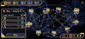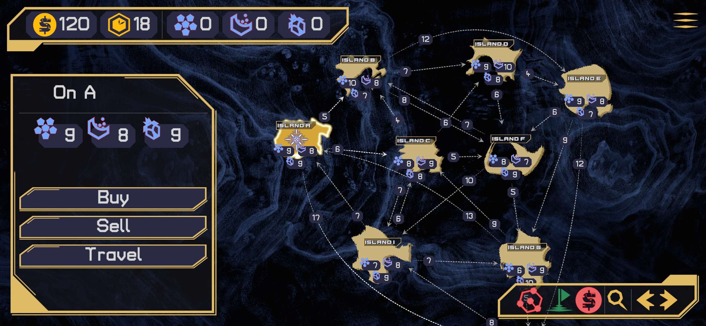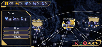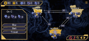 Each planet is mostly covered by the ocean. You land on Island A. From there, you can travel to other islands. On each of them, you can buy or sell goods. The thing is, prizes are different. Try to develop your strategy to earn more money and to come back home richer in both wealth and memories! How much can you earn? Our game offers: